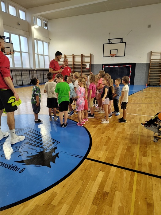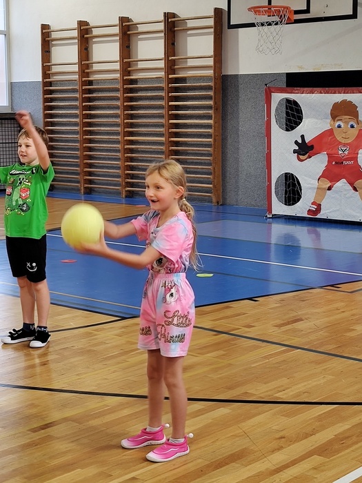 Dnešní hodinu tělocviku si pro nás připravili trenéři házené. Seznámili nás s pravidly a my jsme si pak společně vyzkoušeli zahrát házenou. Moc se nám to líbilo a někteří budou chodit do házené.
