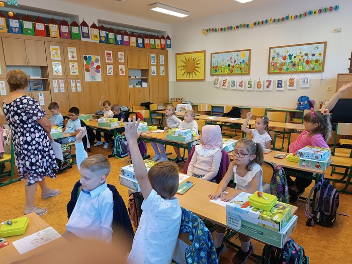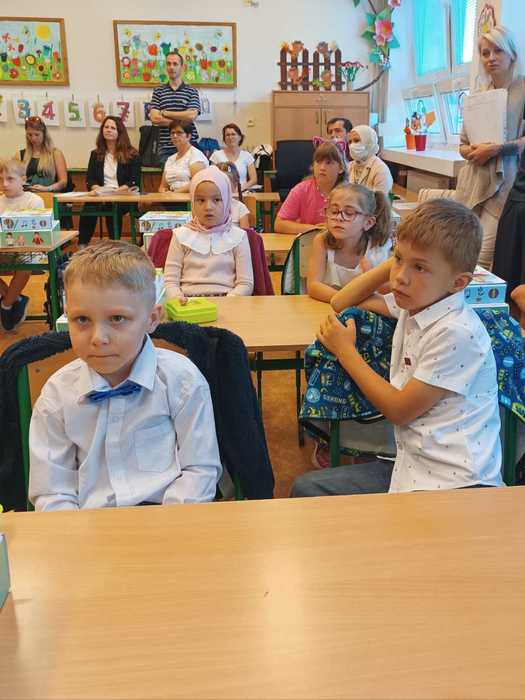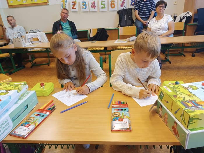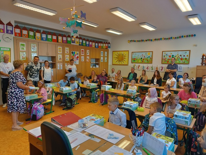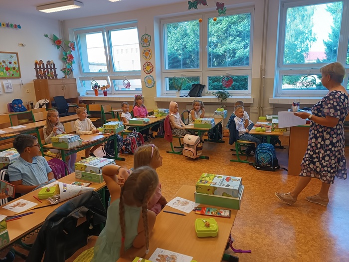 1. září jsme se všichni sešli ve vyzdobené třídě, kde nás přivítala naše paní učitelka a paní asistentka.