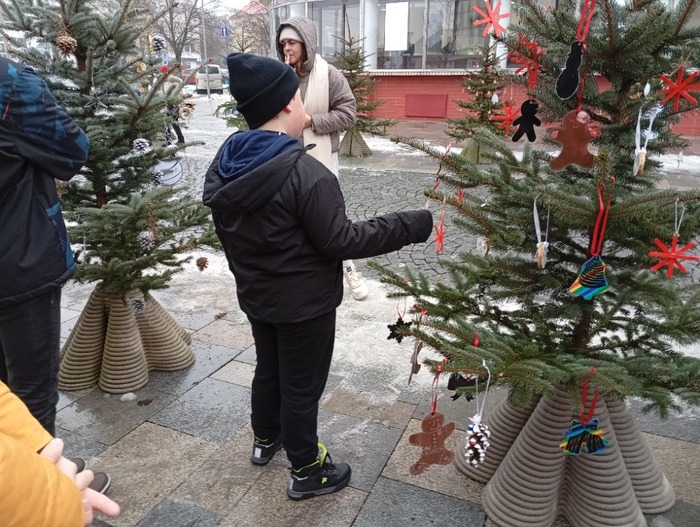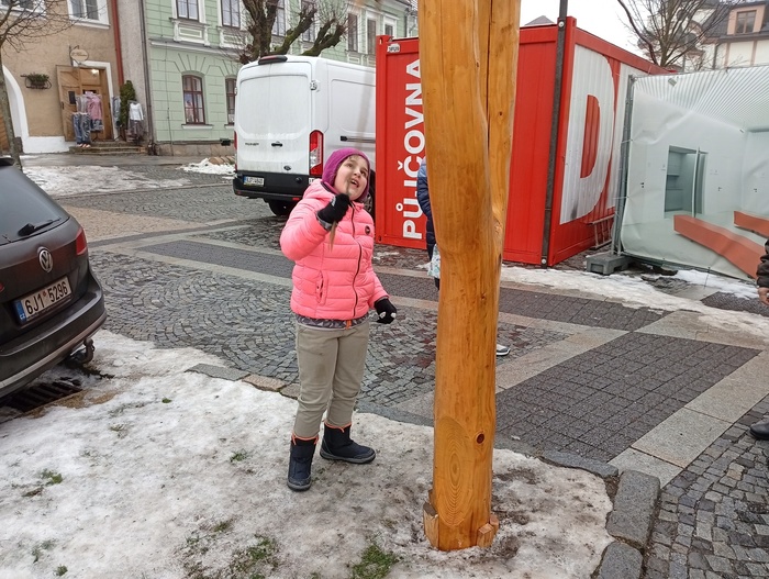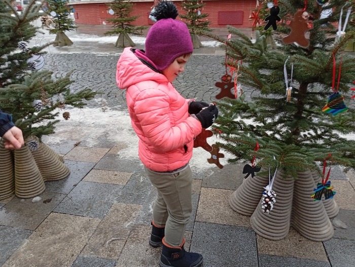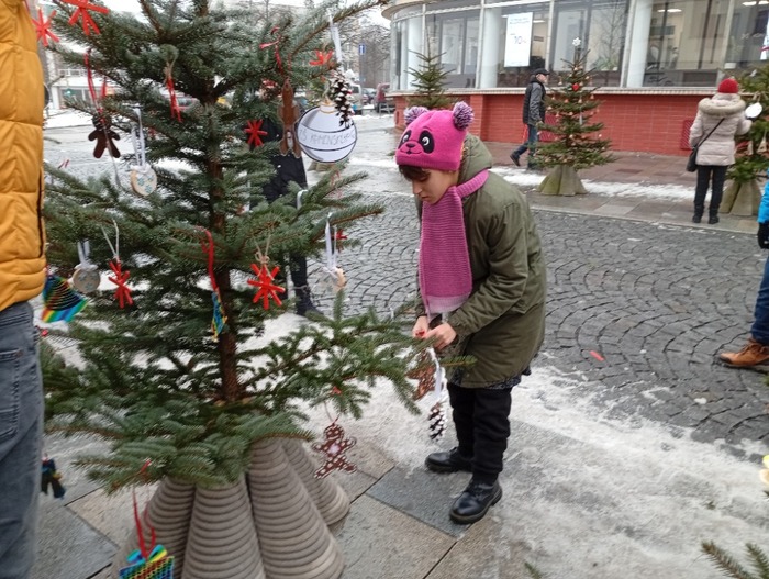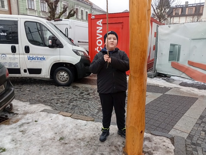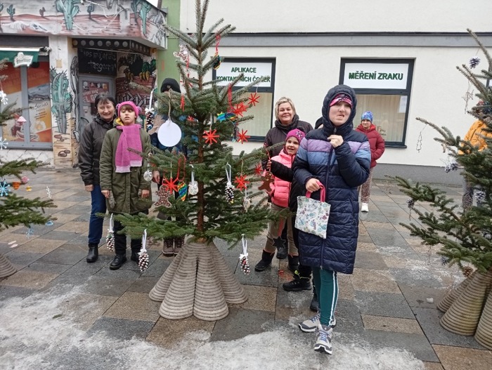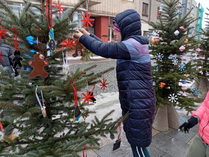 Úvod > Třídy > 1.E > Zdobení stromečku na náměstí Republiky ve Žďáře nad Sázavou