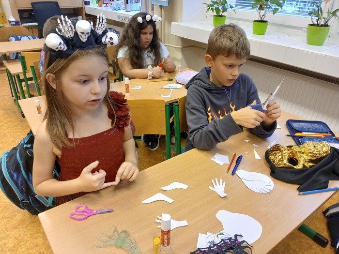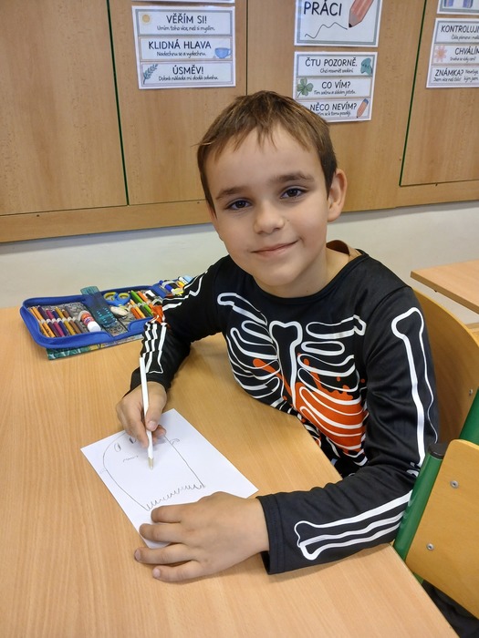 Konec října byl ve znamení strašení. Dušičkový den jsme si užili spoustou aktivit - počítání, hádanky a doplňovačky, kreslení a samozřejmě jsme byli i ve strašidelných kostýmech.