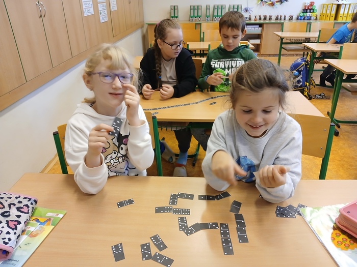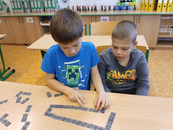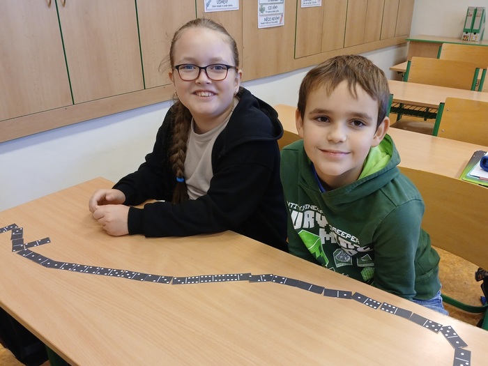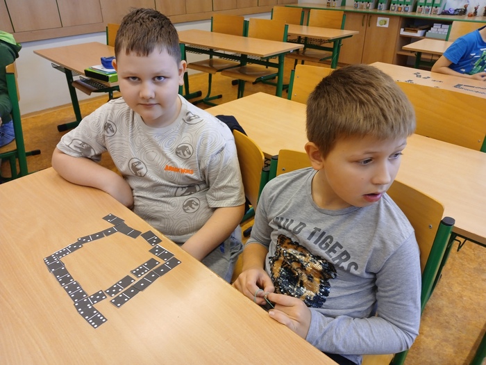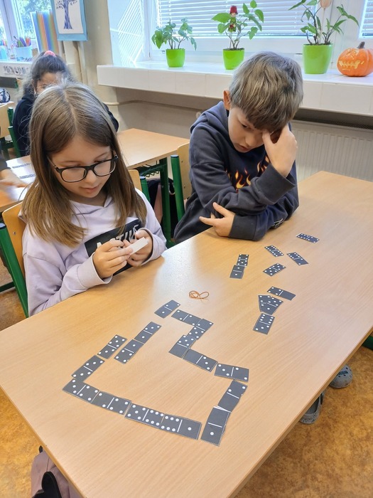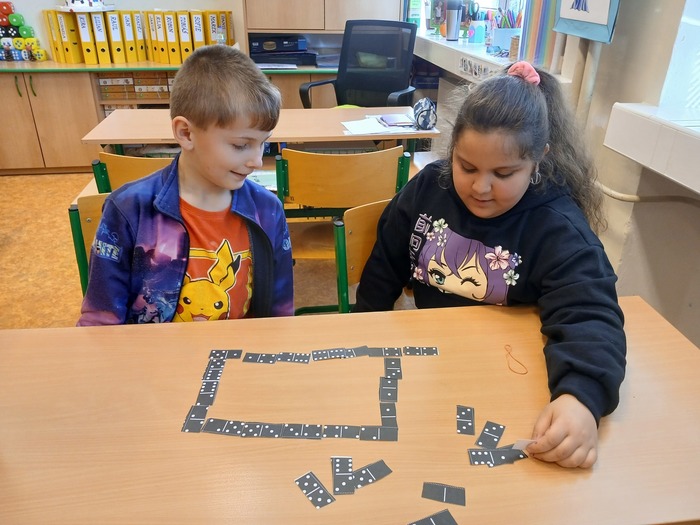 Matematika nemusí být jen počítání sloupečků, ale také spousta hraní a soutěžení. Když jsme si vystříhali kameny domina, mohli jsme si zahrát a také si procvičit sčítání a odčítání do 20.