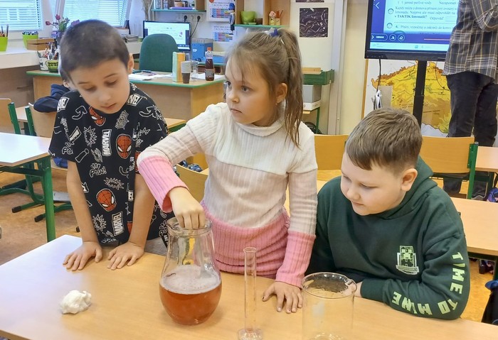 Když si tak v matematice probíráme měření veličin, zastavili jsme se u objemu a zkusili si podle návodu vyrobit pravou limonádu. Měření šťávy v mililitrech zvládla každá skupina a tak bylo těžké vyhodnotit nejlepší vzorek. Povedla se všem a jak chutnala ke svačině!