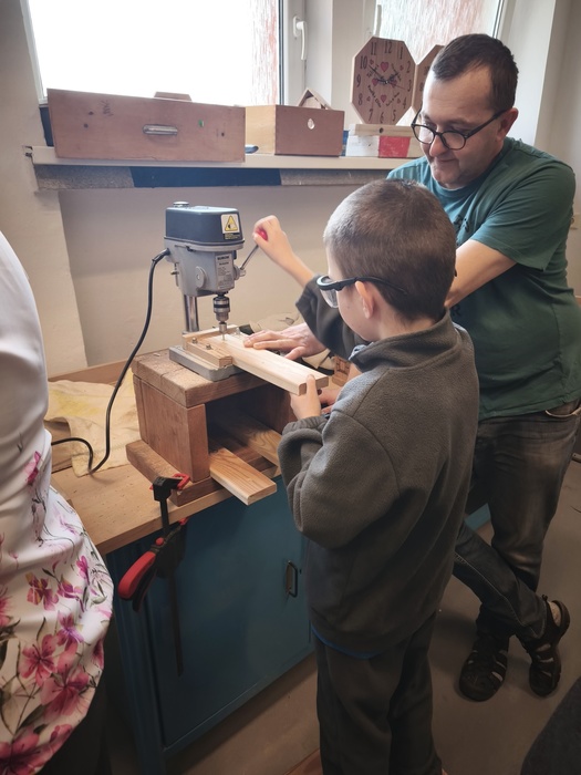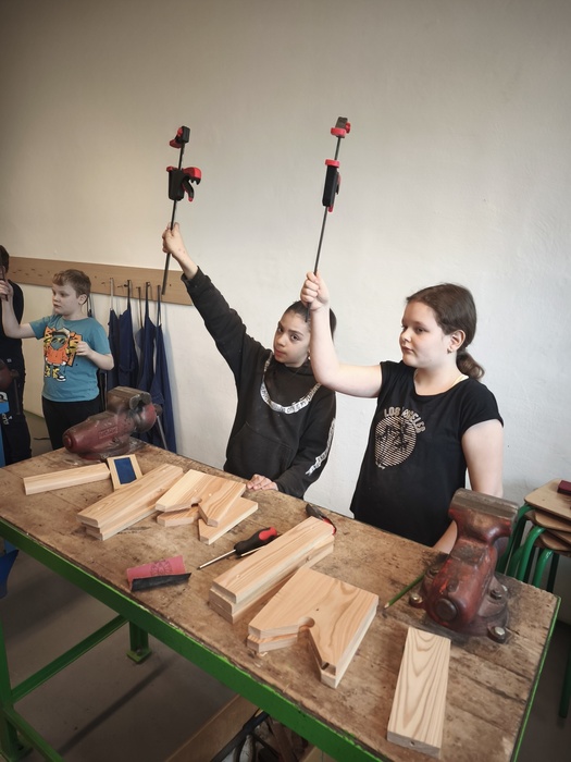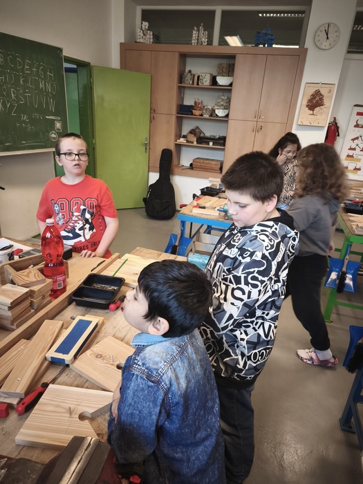 Děti si společně s panem truhlářem vyrobily stoličky na sezení.
