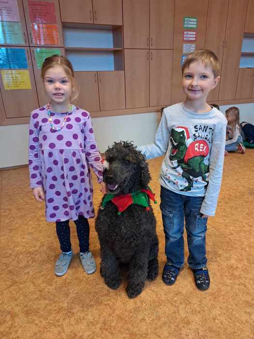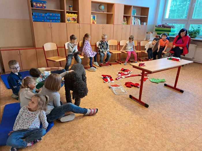 I pejskové se chystají na Vánoce. Zjistily to děti z přípravné třídy v pondělní hodině canisterapie.