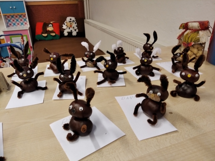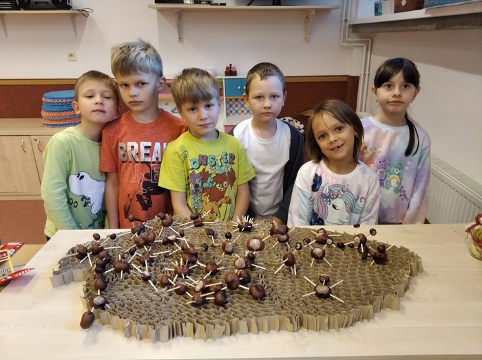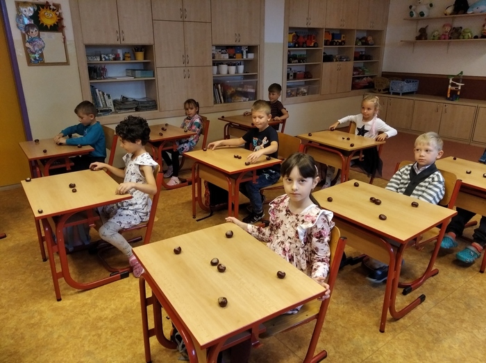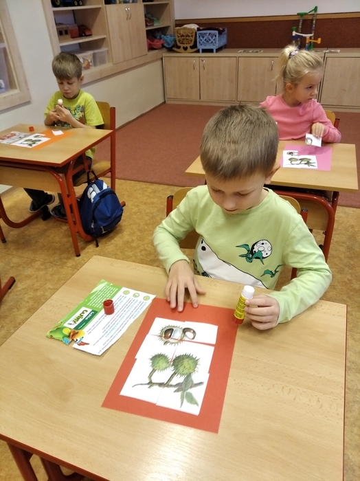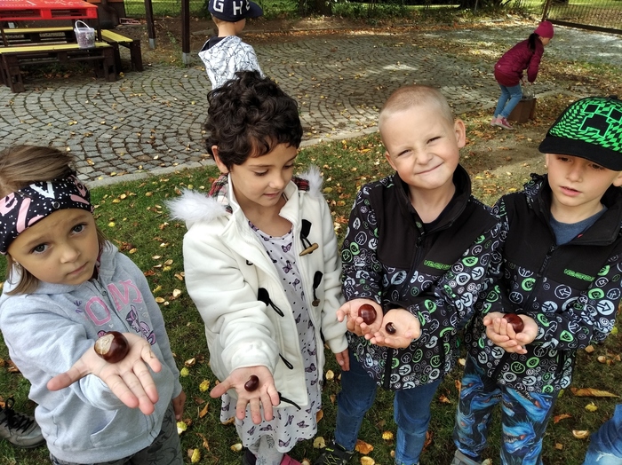 Vyprávění o podzimu jsme v přípravce začali básničkou o kaštanu a kaštanům jsme se věnovali i v dalších činnostech. Nejdříve jsme si je ale na školní zahradě posbírali a pak jsme si s nimi hráli i z nich vyráběli. A kaštany, které nám zbyly, si myslivci odvezou pro zvířátka.