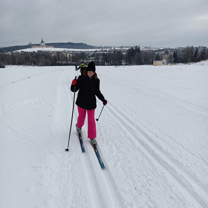 Žáci 7. a 8. ročníku zahájili lyžařský běžecký i sjezdový výcvik. Počasí jim přálo.