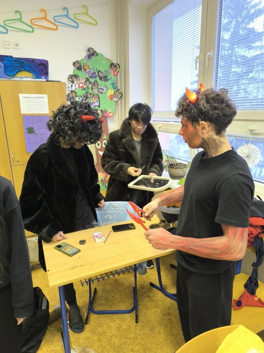 Andělsky čertovská parta s těmi nejlepšími Mikuláši ... to je 9.A". Děkujeme žákům!
