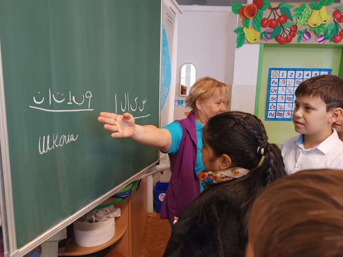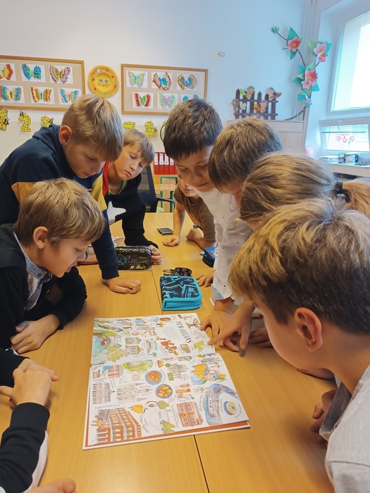 Projektový den se nám moc líbil. Seznámili jsme se s pohádkami z celého světa, poslechli jsme si čtení dětí z naší třídy, které k nám přišly z jiné země v rodném jazyce. Taky jsme putovali světem a zajímala nás například typická jídla pro tyto oblasti.