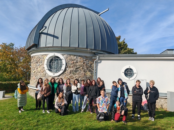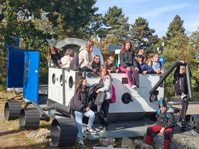 Naši sedmáci se vydali do brněnské hvězdárny a planetária. V digitáriu se prostřednictvím 3 D animace ocitli ve vesmíru, prohlédli si hvězdnou oblohu. Před budovou planetária také neváhali prozkoumat několik interaktivních exponátů- kaleidoskop, pixelovou stěnu, zvukovod.
