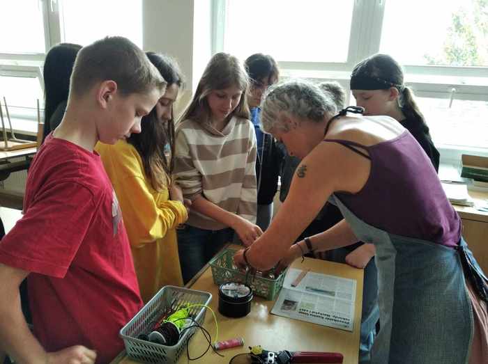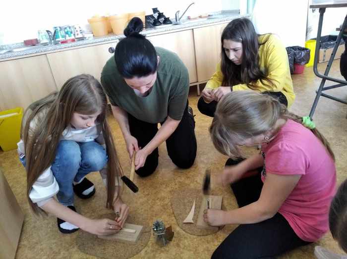 Žáci 6. A měli v pondělí 6. května netradiční výtvarnou výchovu. Pracovali s opravdovou hovězí kůží a dle instrukcí lektorky si vyrobili vlastní kožený náramek. Bylo to pro všechny moc zajímavé tvoření.