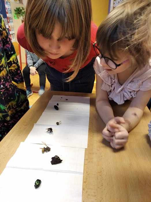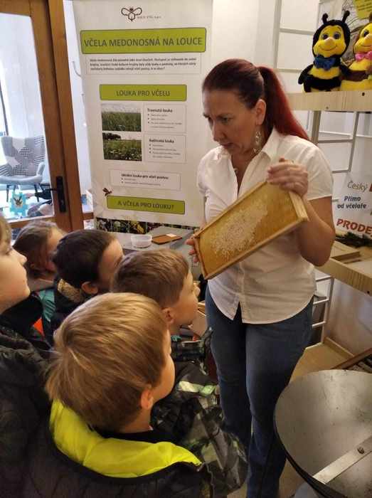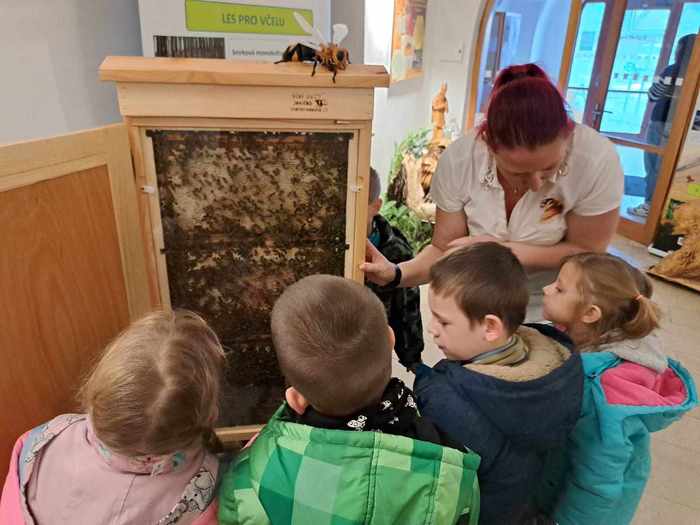 Přípravná třída si nejdříve prohlídla druhy hmyzu, podívala se na pohádku o tom, jak včelky dělají med a pak vyrazila na včelařskou výstavu.