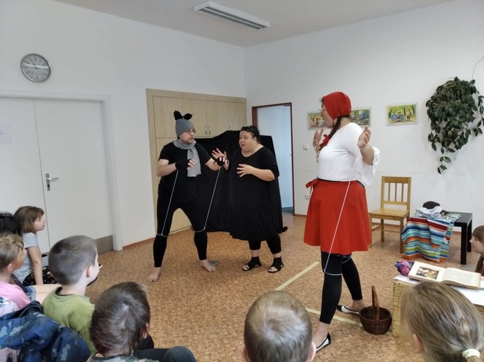 Přípravka MDD oslavila návštěvou divadelního představení. Pohádka O červené Karkulce a O Budulínkovi byla hraná jen pro ni. Bezva bylo, že si děti mohly vyzkoušet kostýmy a s herci si i popovídat.