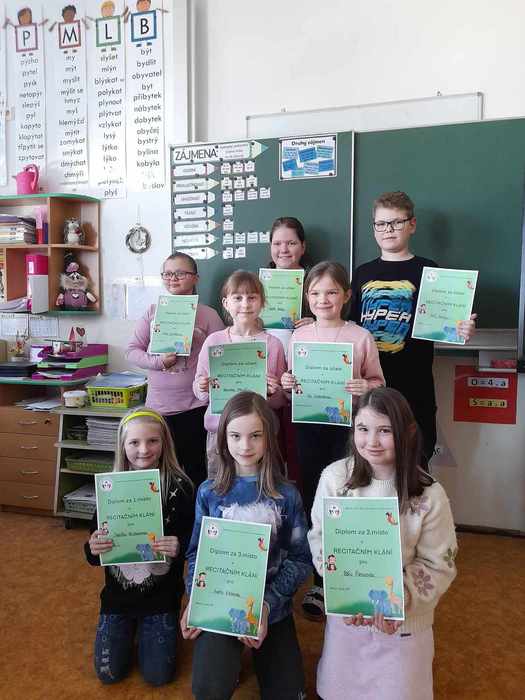 Ve středu 19. února 2025 se konalo školní kolo recitační soutěže. V letošním roce byla mezi soutěžícími velká konkurence a nebylo lehké vybrat tři nejlepší za každou kategorii. Děkujeme všem žákům, kteří se zúčastnili a ještě jednou jim tleskáme za krásnou recitaci.