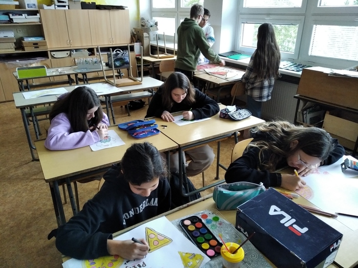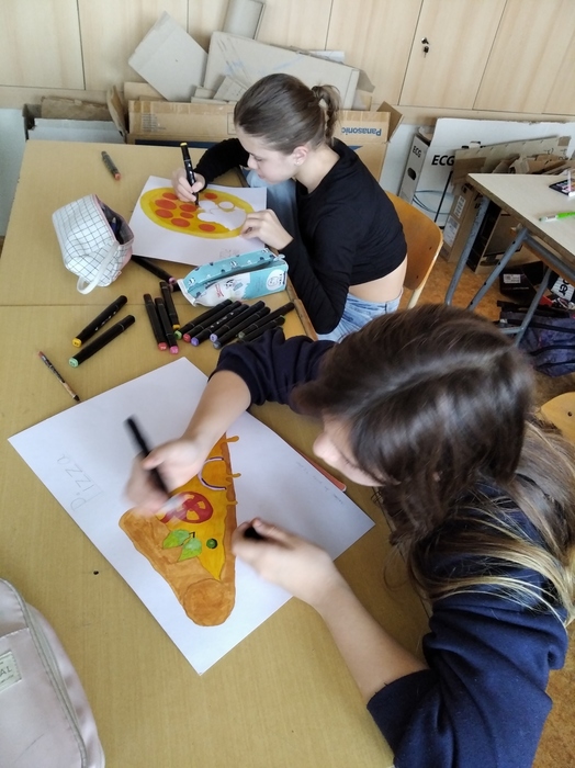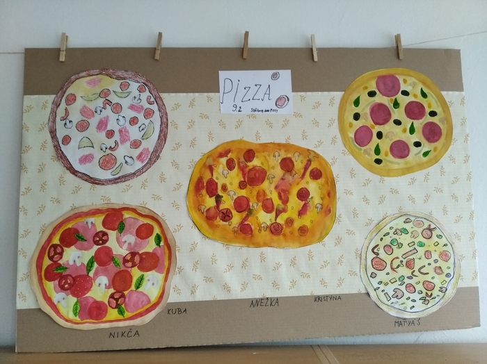 Žáci sedmé třídy ve výtvarce ztvárnili to, co jim chutná a zároveň si připomněli světový den pizzy.
