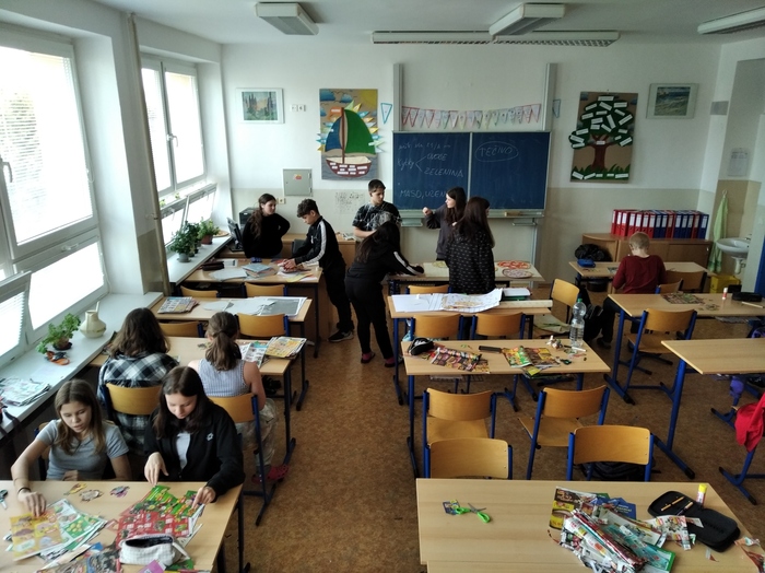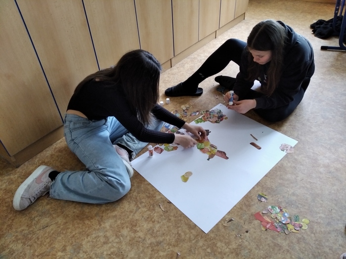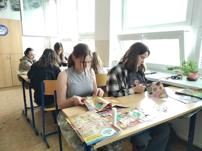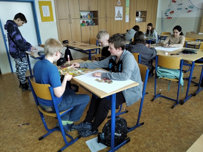 Žáci 7. A ve výtvarné výchově vytvářeli obraz ve stylu italského malíře Arcimbolda.