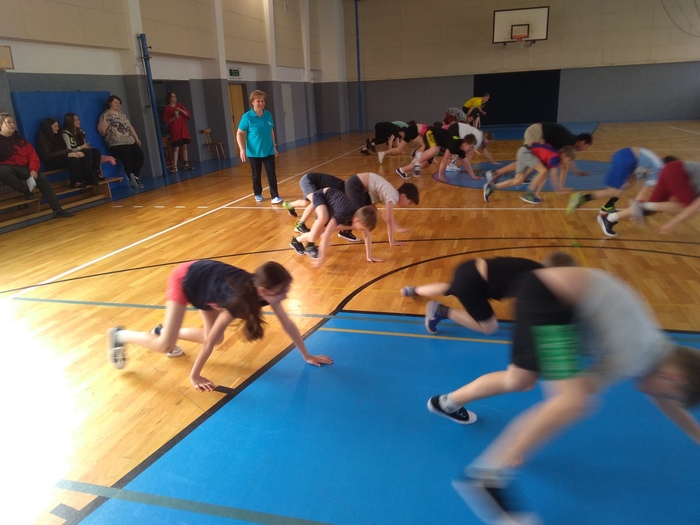 Ve středu 26.4. byli žáci 3.třídy v tělocvičně příjemně překvapeni. Čekala je tandemová výuka. Hodinu Tv absolvovali společně se žáky 8.B. Do společných soutěží, závodů a her se vrhali s nadšením. Doufáme, že taková hodina nebyla poslední.