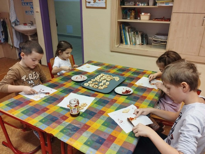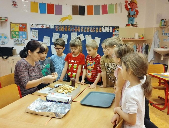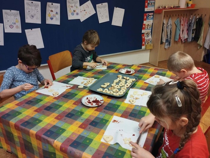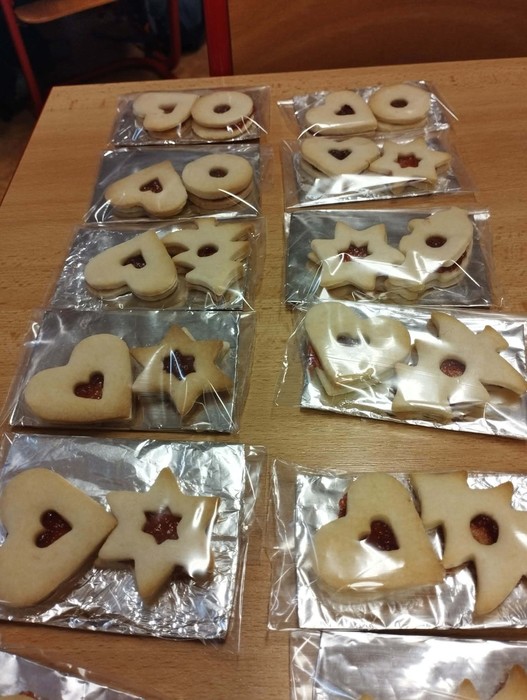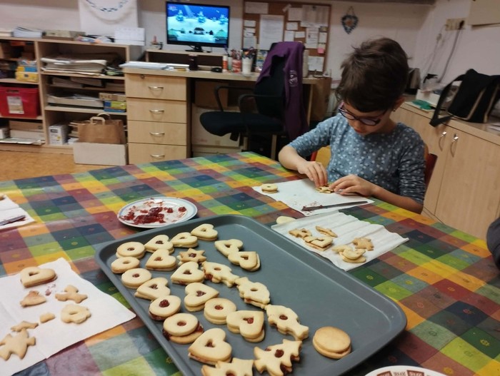 Děti z přípravné třídy už můžou servírovat na stůl. Linecké cukroví upečené, slepené a moc dobré. Nedalo se odolat a muselo se ochutnat.