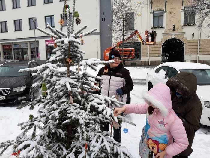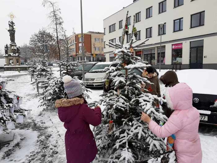 Děti během listopadových dnů vyráběly vánoční ozdoby, které v pátek 1. prosince 2023 pověsily na vánoční stromečky. Nazdobené stromečky si můžete prohlédnout na náměstí.