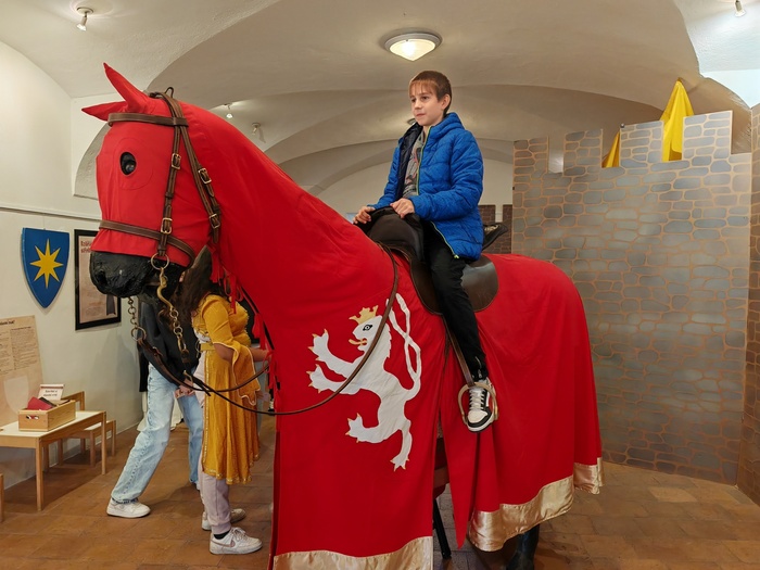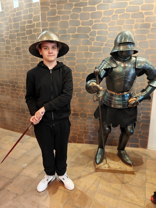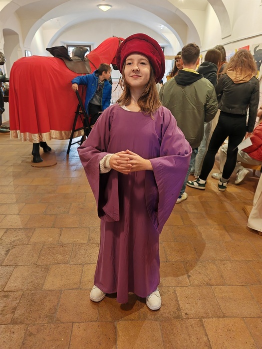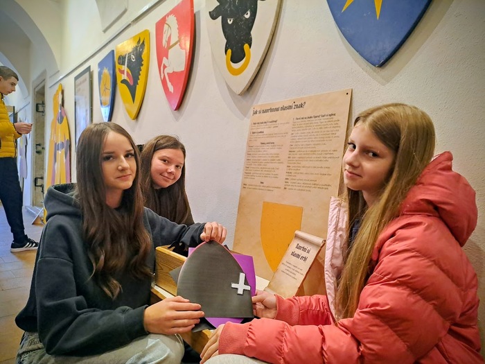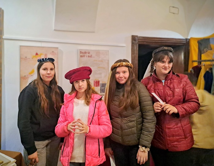 V Novém Městě na Moravě je krásná výstava „Hurá do středověku“, na kterou jsme se v rámci Dějepisu mohli podívat. Žáci sedmé třídy si poslechli informace, vyzkoušeli si středověké oblečení a zbraně, aktivně plnili úkoly a vytvořili si svoje středověké město.