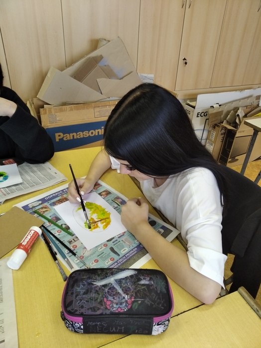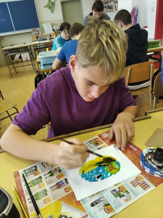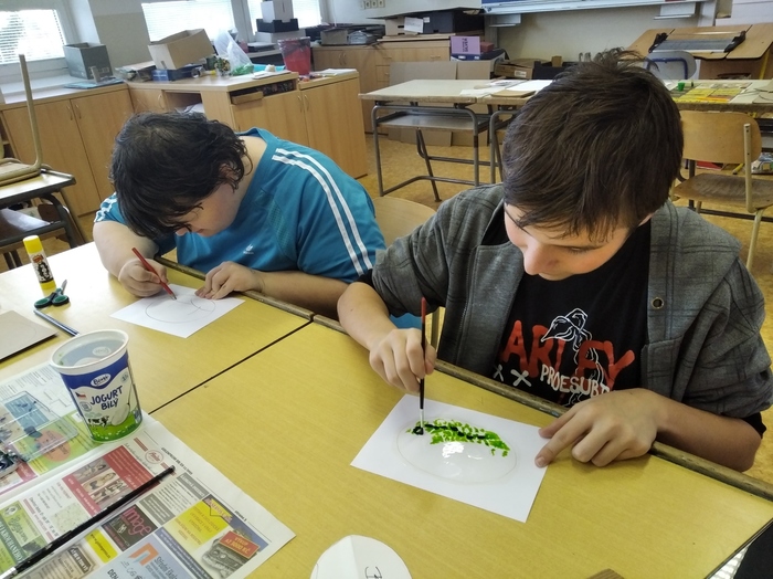 Zapouštění do klovatiny si vyzkoušeli žáci devátého ročníku. Ve výtvarné výchově tak vytvořili obrázek podzimní krajiny.