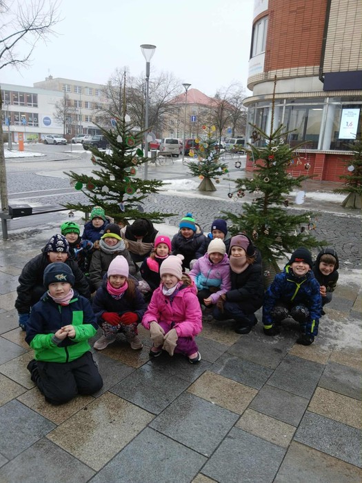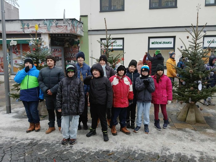 V úterý 2. prosince naši žáci ozdobili dva stromečky na náměstí Republiky ve Žďáře nad Sázavou.