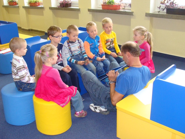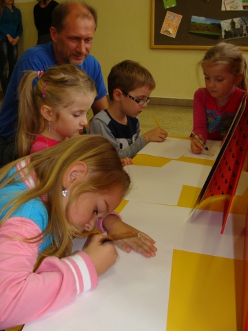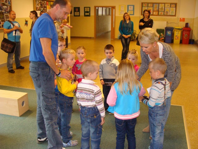 Na prvním setkání Kulíšků v novém školním roce se objevilo nečekaných devět usměvavých dětí a jejich rodičů. Po úvodním seznámení jsme vyjeli do nejvyššího patra a prohlédli si Žďár z výšky. Pak jsme hledali knížku o koťátku, ze které nám pan učitel četl. Hned potom jsme měli najít obrázky zvířátek z knížky a ještě je nakreslit. To se opakovalo i v dalších patrech. Jen knížky byly jiné – o housátku, králíčkovi a štěňátku. V nejnižším patře jsme se ještě podívali do kulíškovské třídy. Nakonec jsme si s paní učitelkou Markétou zazpívali známé písničky. Všichni byli nadšení a už se těší na listopadové setkání.