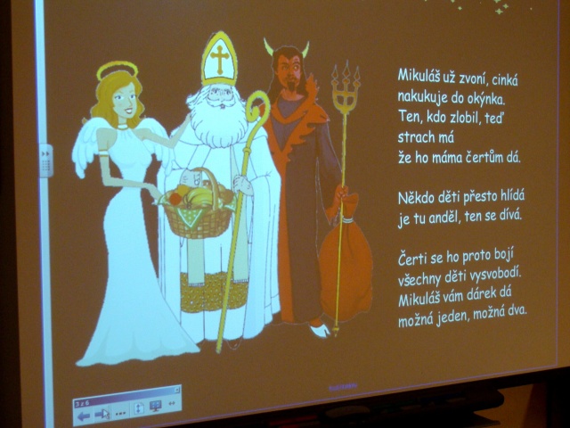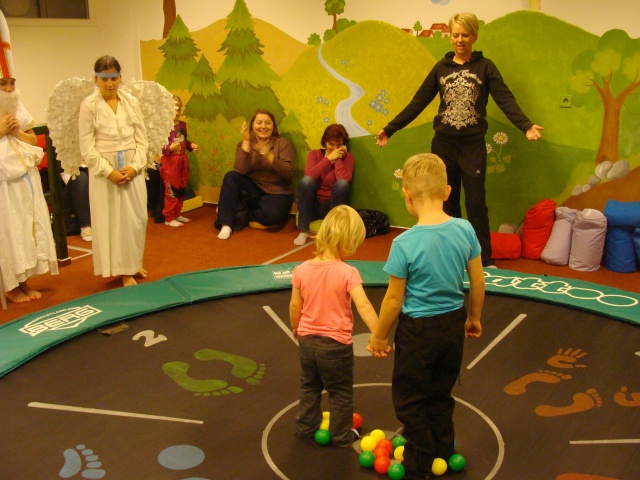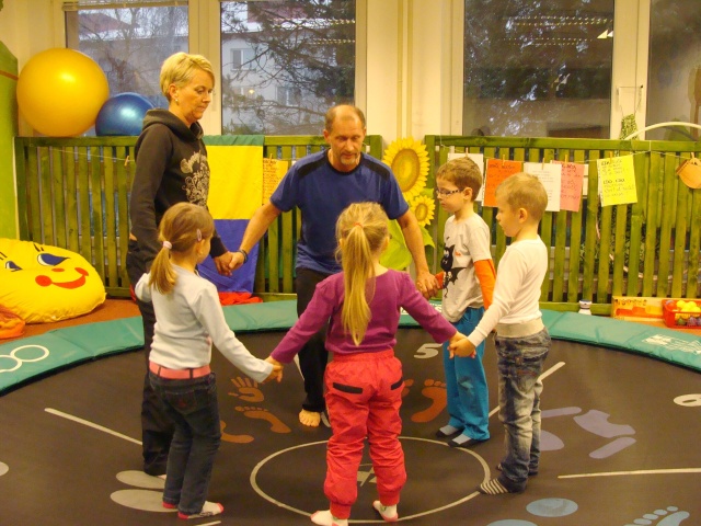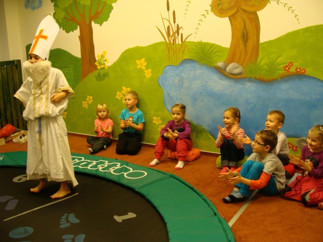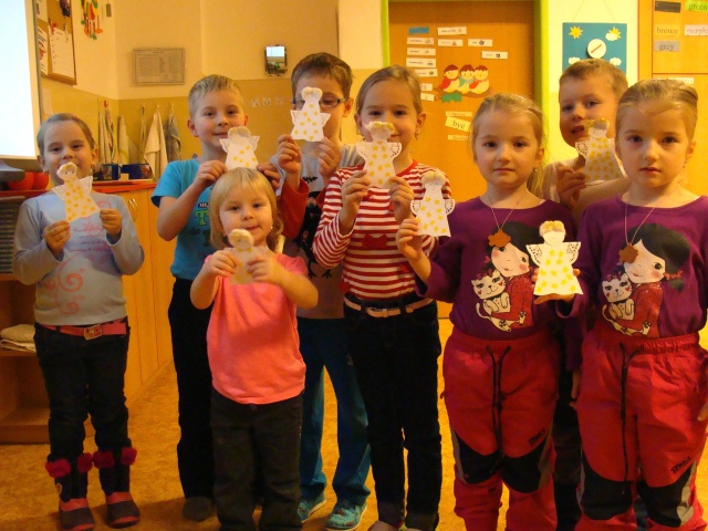 Druhého prosince jsme se sešli ve třídě paní učitelky Lenky. Nejdříve jsme si povídali o adventní době a o svátcích Mikuláše. Když jsme si vyrobili krásné andílky z papíru, zazpívali jsme si a zacvičili. Nejvíce jsme se ale těšili na velkou trampolínu. Na ní jsme se nejdříve houpali, potom lezli a nakonec i skákali. Zkusili jsme prolézat tunelem a cvičit s míčky. Najednou se ve dveřích objevil Mikuláš s andílky a chtěli si taky zaskákat. Šlo jim to moc dobře a andílci opravdu létali. Když jsme jim zazpívali, dostali jsme malé sladkosti. Nakonec jsme si popřáli krásné Vánoce a těšíme se na další setkání.