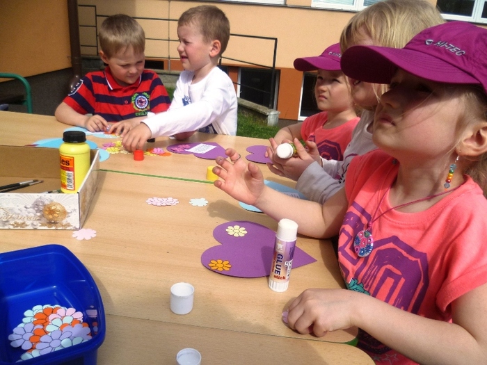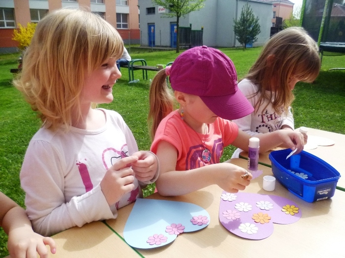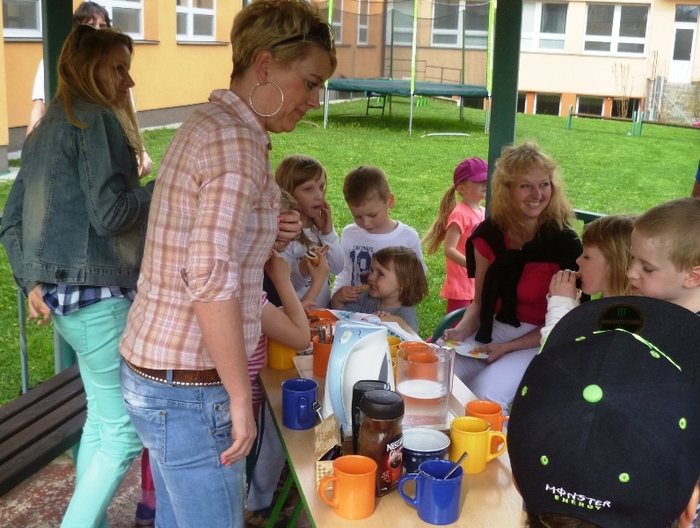 V úterý 5. května přišlo deset malých Kulíšků. Protože jsme měli v plánu oslavu Svátku matek, očekávali jsme, že přijdou hlavně maminky. A jako naschvál přišla většina tatínků Protože bylo krásně teplo, uspořádali jsme oslavu na školní zahradě. Nejdříve jsme si povídali o květnových svátcích a rodiče si šli do altánku na malé občerstvení. Hned potom nás paní učitelka Markéta naučila povídání o mamince, které jsme i zahráli. Paní učitelka Lenka s námi vyrobila přáníčka a pakl jsme si ještě chvíli hráli – třeba na Slepou bábu, nebo Zlatou bránu. Na závěr Kulíška jsme maminkám předvedli nacvičené vystoupení a snědli všechny dobroty.