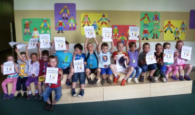 Na posledního Kulíška jsme se moc těšili a asi se moc těšilo i sluníčko, protože byl den jako malovaný. Vzali jsme olympijskou vlajku, pochodeň a sportovní potřeby a vyrazili na hřiště. Nejdříve jsme slavnostně zahájili Kulíškovské olympijské hry a oběhli s vlajkou a ohněm kolečko na hřišti. Po rozcvičce už jsme se pustili do soutěžení – v běhu, skoku dalekém a hodu míčkem. Protože byli všichni moc šikovní, zasloužili si za odměnu medaili. Vyhodnocení olympiády už proběhlo ve škole, stejně jako vyhodnocení celého roku v klubu Kulíšek. Každý, kdo chodil do Kulíška, dostal svoje první vysvědčení a jak jinak, než s obrovskou jedničkou!