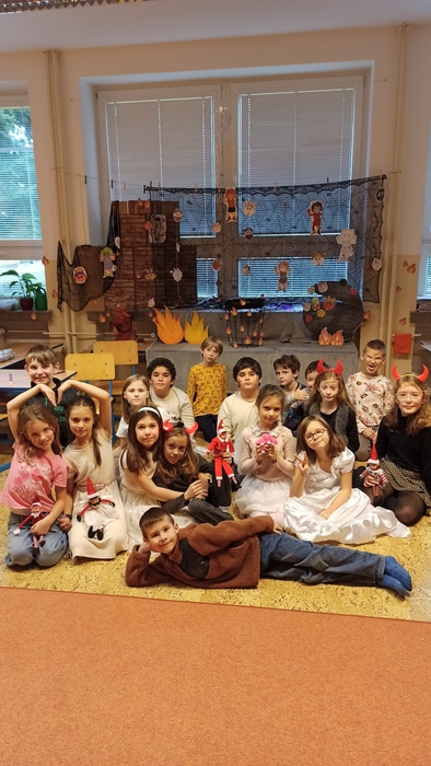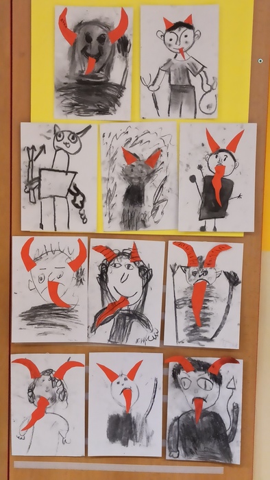 První týden v prosinci proběhla v družině Čertovská olympiáda. Děti plnily různé úkoly: malovaly a vyráběly čerty, skládaly čertovské puzzle, hledaly cestu z labyrintu, učily se říkanky, soutěžily o nejdelší řetěz, hrály čertovskou honičku,...
