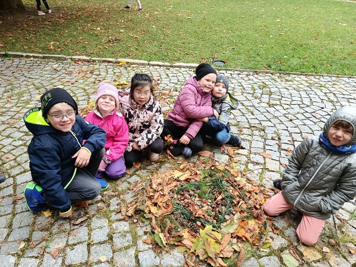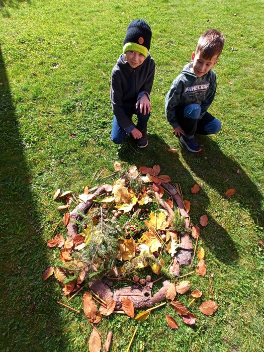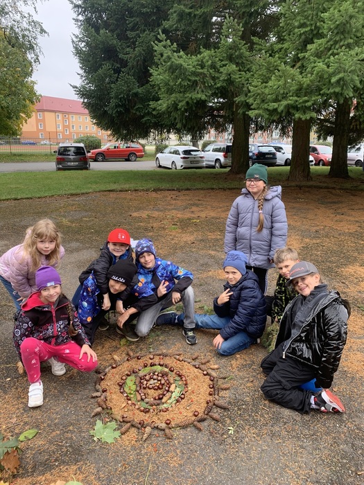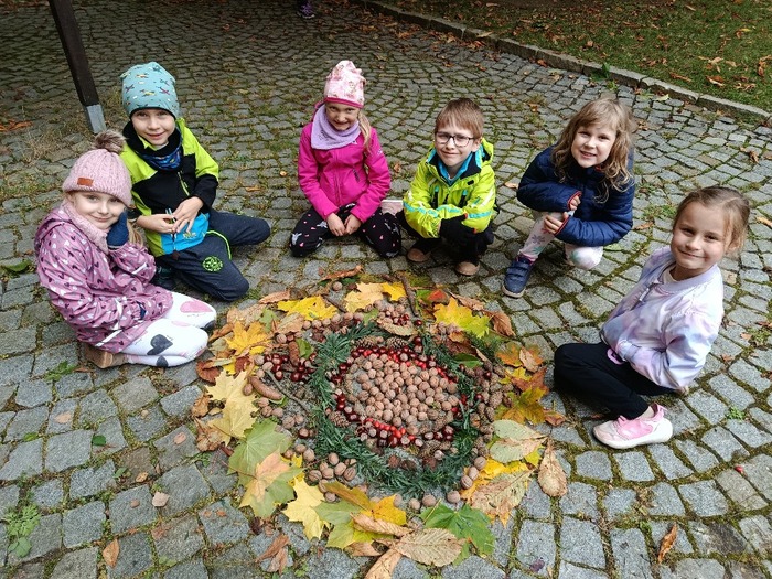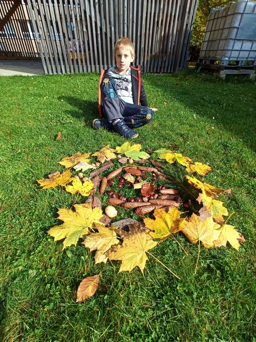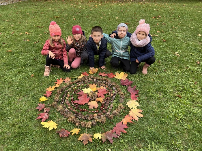 V družině jsme vyráběli mandaly z přírodnin. Využili jsme k tomu různé přírodní materiály jako jsou šípky, šišky, listy, větvičky,...