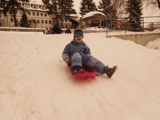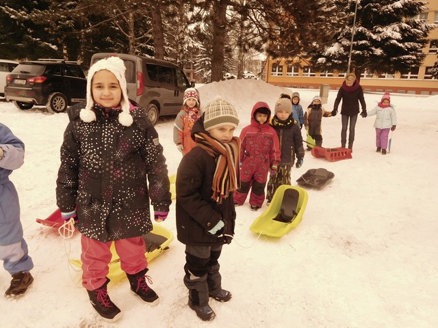 V úterý děti z přípravné třídy vyrazily na kopec. Jízdu na kluzáku či bobech si tak užily, že si ji hned další den zopakují. To nám to z kopce fičelo!