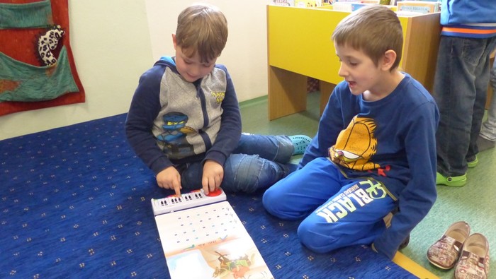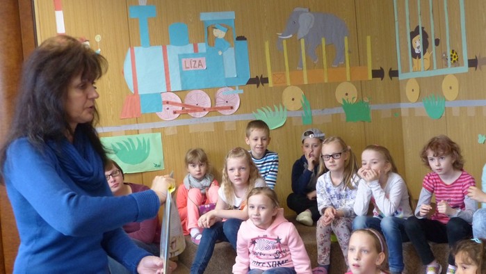 Pokud jste uhodli, pak jste šikulky, pokud ne, nic si z toho nedělejte, my jsme také potřebovali trošku napovědět. Zato v hledání ukrytých jmen ve slovech (halenka – Alenka, motorka - Oto) se dětem velmi dařilo. Velkou radost udělala dětem také pohádka Maxipes Fík. A protože je jaro, jako poděkování a malou odměnu jsme paní knihovnici zazpívali písničku Kotě a sluníčko.