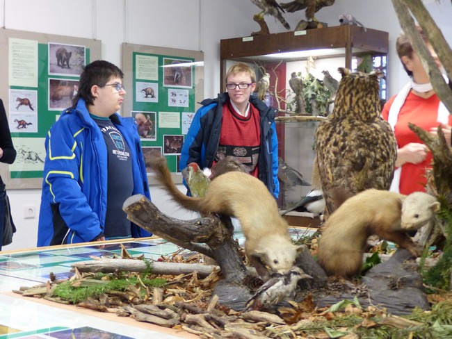 ...se jmenovala zajímavá výstava v Regionálním muzeu na Tvrzi, kterou navštívili žáci z 8.E. Dozvěděli se zde spoustu zajímavostí o zvířatech, stromech, ptácích žďárských lesů. Poznávali stopy zvířat, listy stromů a mohli si zkusit i mysliveckou uniformu.