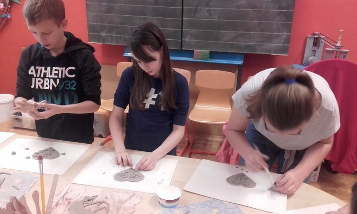 Malé nahlédnutí do keramické dílny s 5.A. Vyrábíme z hlíny, neplácáme z modelíny. Maminka je naše srdíčko......