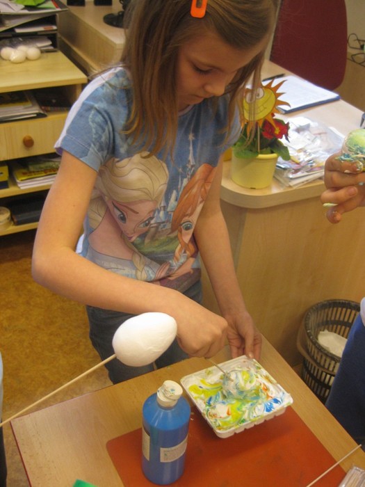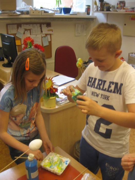 Děti ve školní družině vyráběly košíček na vajíčka, měly možnost vyzkoušet ubrouskovou techniku a zdobily vajíčka pěnou a barvou. Velikonoční tvoření se dětem velmi povedlo, pracovaly s chutí a výrobky si odnesly domů.....