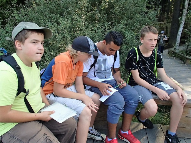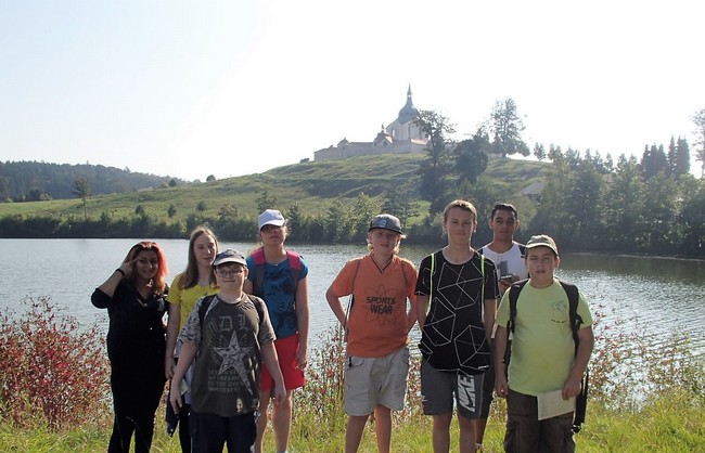 Ve středu 14.9. žáci 8.D využili krásné počasí a vydali se na cvičení v přírodě. „Akce“ začala již ve třídě, kde si každá skupina měla vymyslet název svého týmu. Hned před školou je pak čekal 1.úkol zašifrovaný do matematické abecedy. Cestou k naučné stezce kolem Zelené hory plnila každá skupina další zapeklité úkoly. Oba týmy si s nimi hravě poradily, a tak mohly náročnou cestu (přes 10 km) zakončit v cukrárně U tří hvězd. Každý se zde odměnil podle libosti a posilnil se na zpáteční cestu ke škole.
