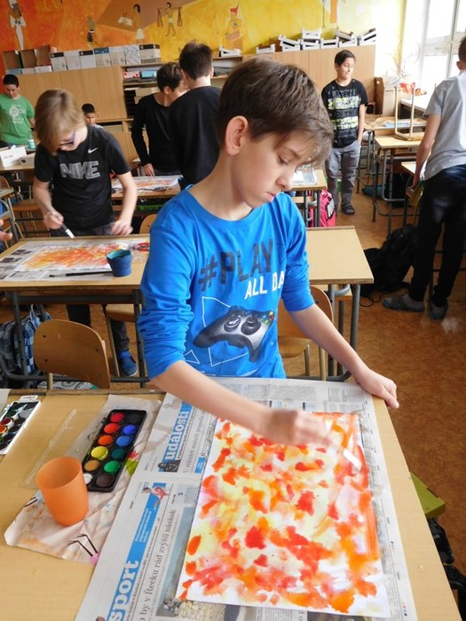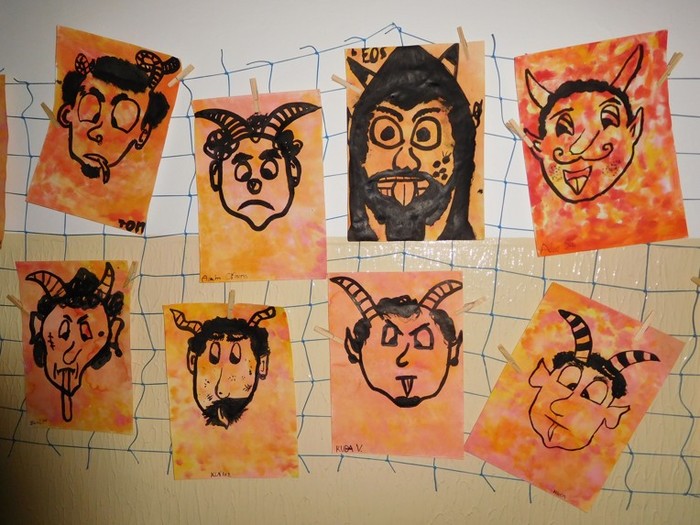 Mikulášem a jeho pomocníky žila celá škola skoro celý týden. V 6.A byla čertů i plná výtvarná výchova. Žáci si mohou v hodinách zkusit různé výtvarné techniky.