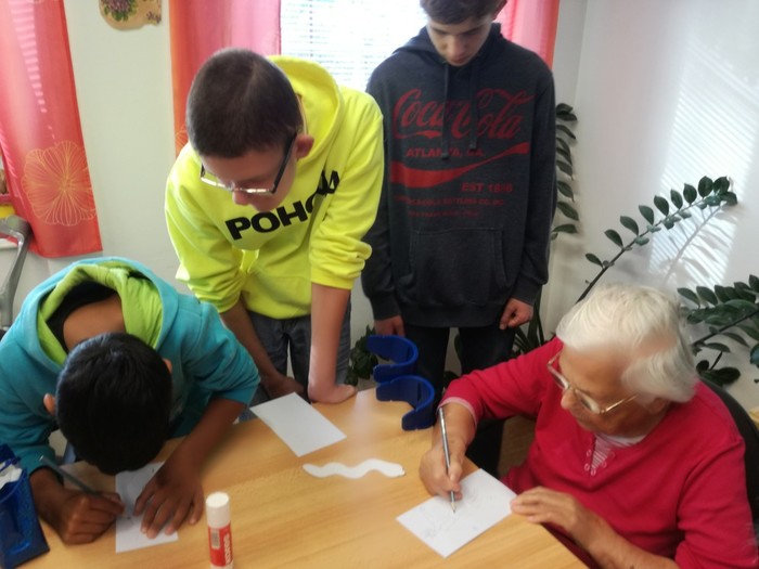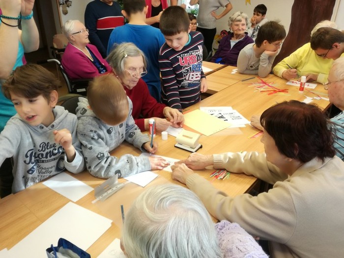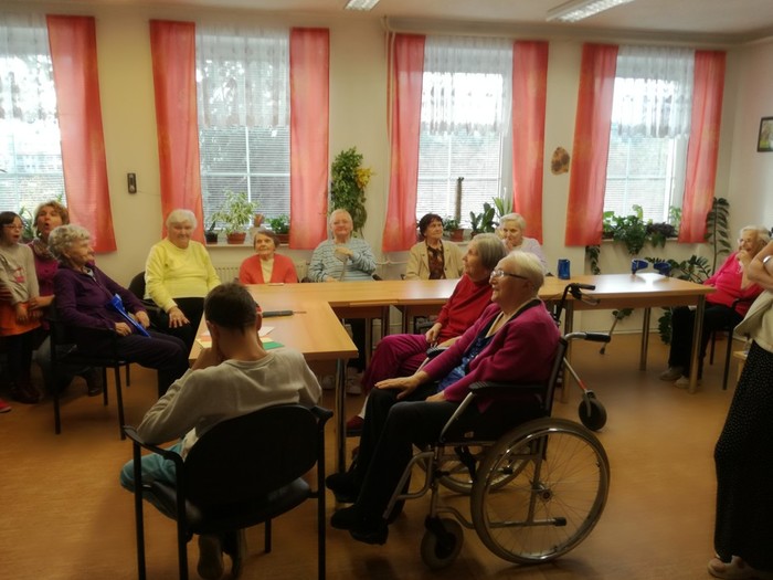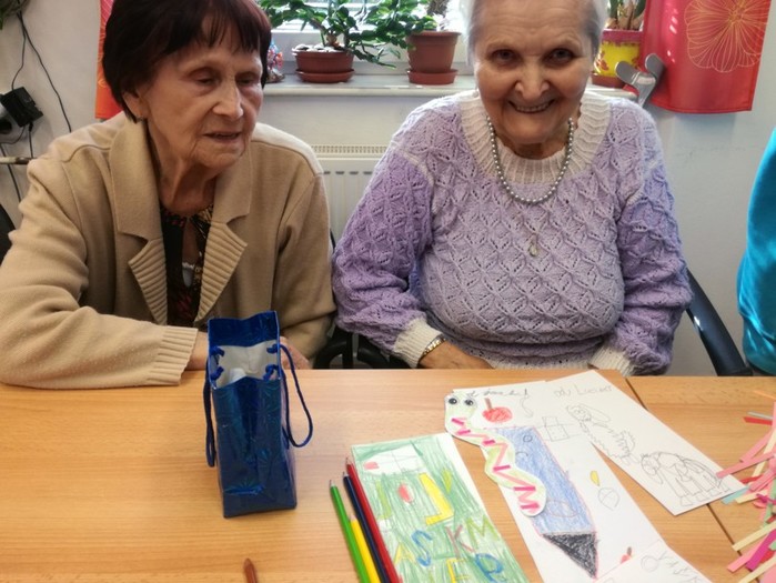Krásná a pohodová nálada, spousta povídání, úsměvů a radosti. Tak přesně takto vypadala návštěva dětí ze speciálních tříd u babiček v Domě klidného stáří. Děti babičkám přednesly básničku, zazpívaly písničku a společně si pak vyrobily veselé záložky do knížek. Na závěr babičkám věnovaly malý dáreček - čtyřlístek s andílkem pro štěstí.......