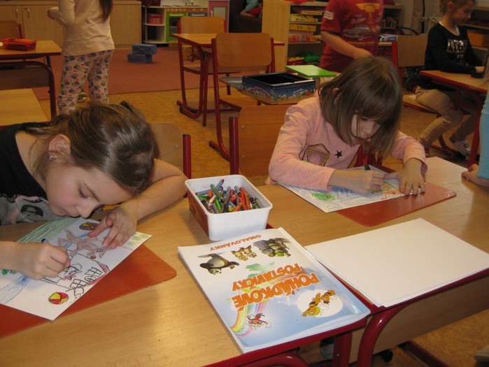 V družinách se stále něco děje. V měsíci březnu byla v družině vyhlášena výtvarná soutěž pod názvem ,,Pohádkové kreslení ". Tentokráte děti malovaly pohádkové bytosti. O výsledcích rozhodovaly děti. Na závěr čekala děti odměna.