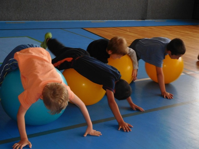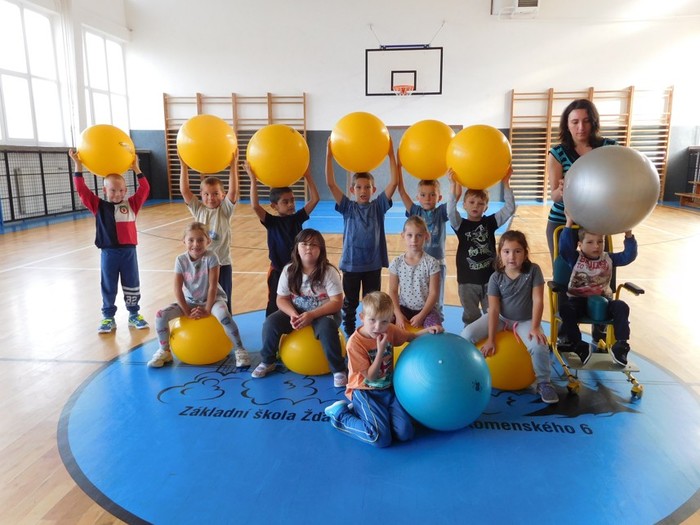 První tělocvik v přípravné třídě se zvládl na jedničku. S převlečením nebyl problém a pěkně poskládat své věci děti také umí. A hry se středním i velkým míčem si pořádně užily. Takže se všichni těšíme na další hodinu tělesné výchovy.