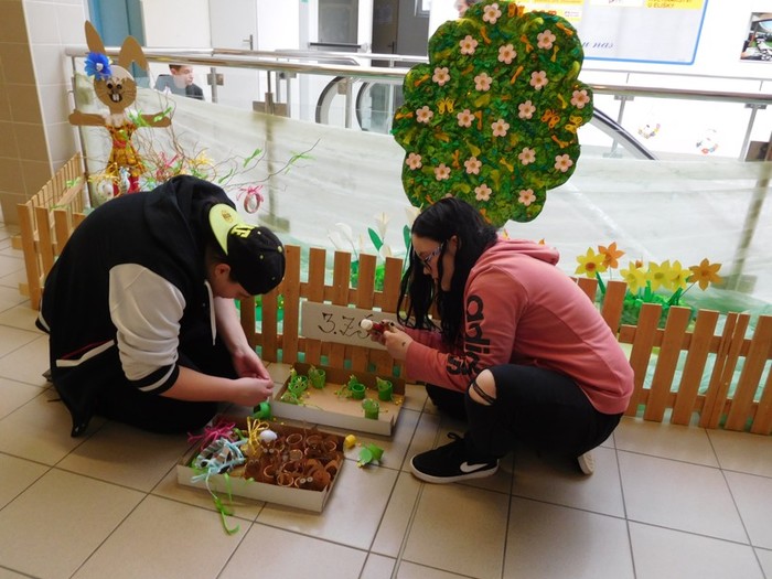 Ve středu 14. března žáci třídy 9.A s p. uč. Šorfovou přivítali jaro již tradiční velikonoční výstavou v obchodním centru Convent. Vystaveny jsou zde velice zdařilé práce žáků 2. stupně. Prohlédnout si je můžete na našich webových stránkách, ale působivější jistě bude osobní návštěva výstavy. Inspirující nápady i jarní atmosféra výstavy jistě potěší a mile naladí všechny kolemjdoucí. Takže jste všichni zváni…..